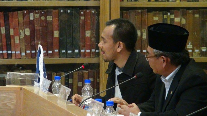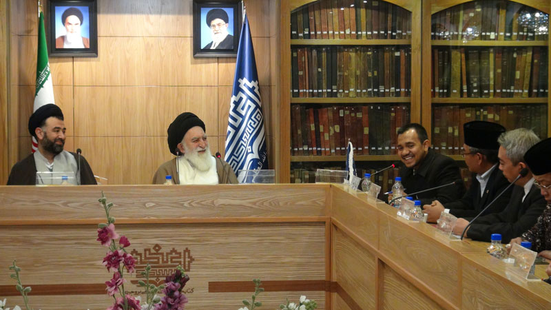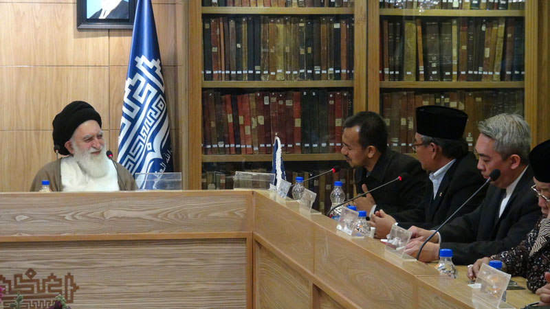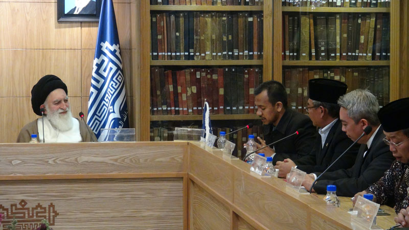 جلسه رییس مجلس منطقه ای اندونزی و هیئت همراه با آیت الله علوی بروجردی در کتابخانه