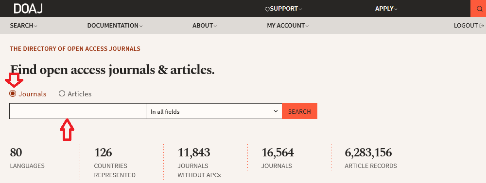 بعد از ورود به لینک https://doaj.org/، صفحه زیر برای شما نمایش داده می شود.