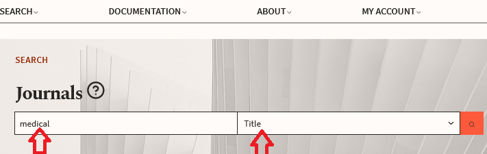 مطابق شکل زیر، کلیدواژه medical برای جستجو در عناوین مجلات موجود در این پایگاه جستجو خواهد شد.