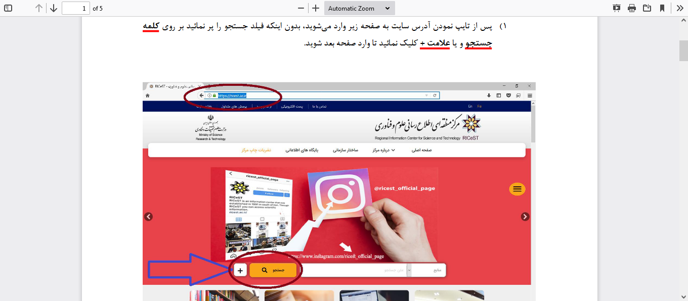 - پس از تایپ نمودن آدرس سایت به صفحه زیر وارد می شوید، بدون اینکه فیلد جستجو را پر نمائید، بر روی کلمه جستجو و یا علامت + کلیک نمائید تا وارد صفحه بعد شوید.