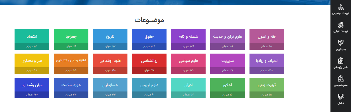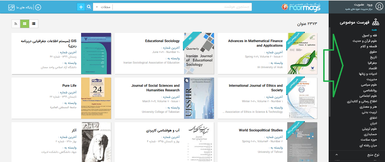 شکل 7- 1- دسترسی به مجلات براساس موضوع از طریق کادر سمت راست صفحه