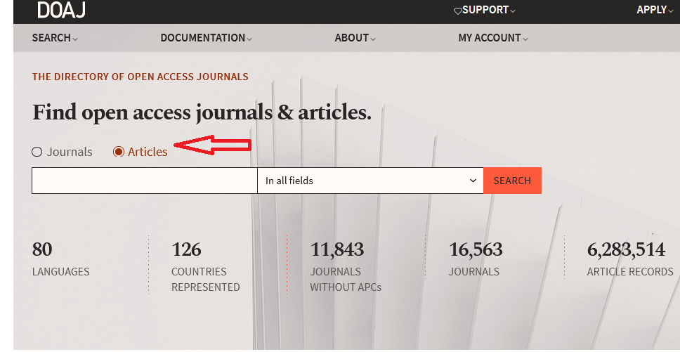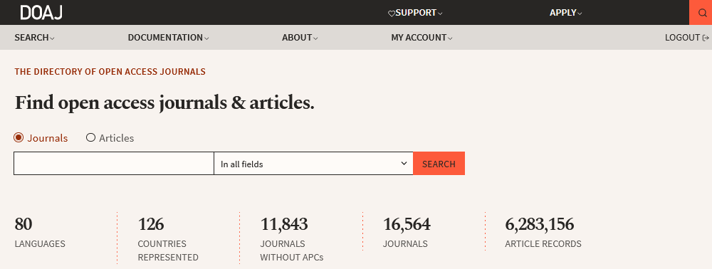 بعد از ورود به لینک https://doaj.org/، صفحه زیر برای شما نمایش داده می شود.